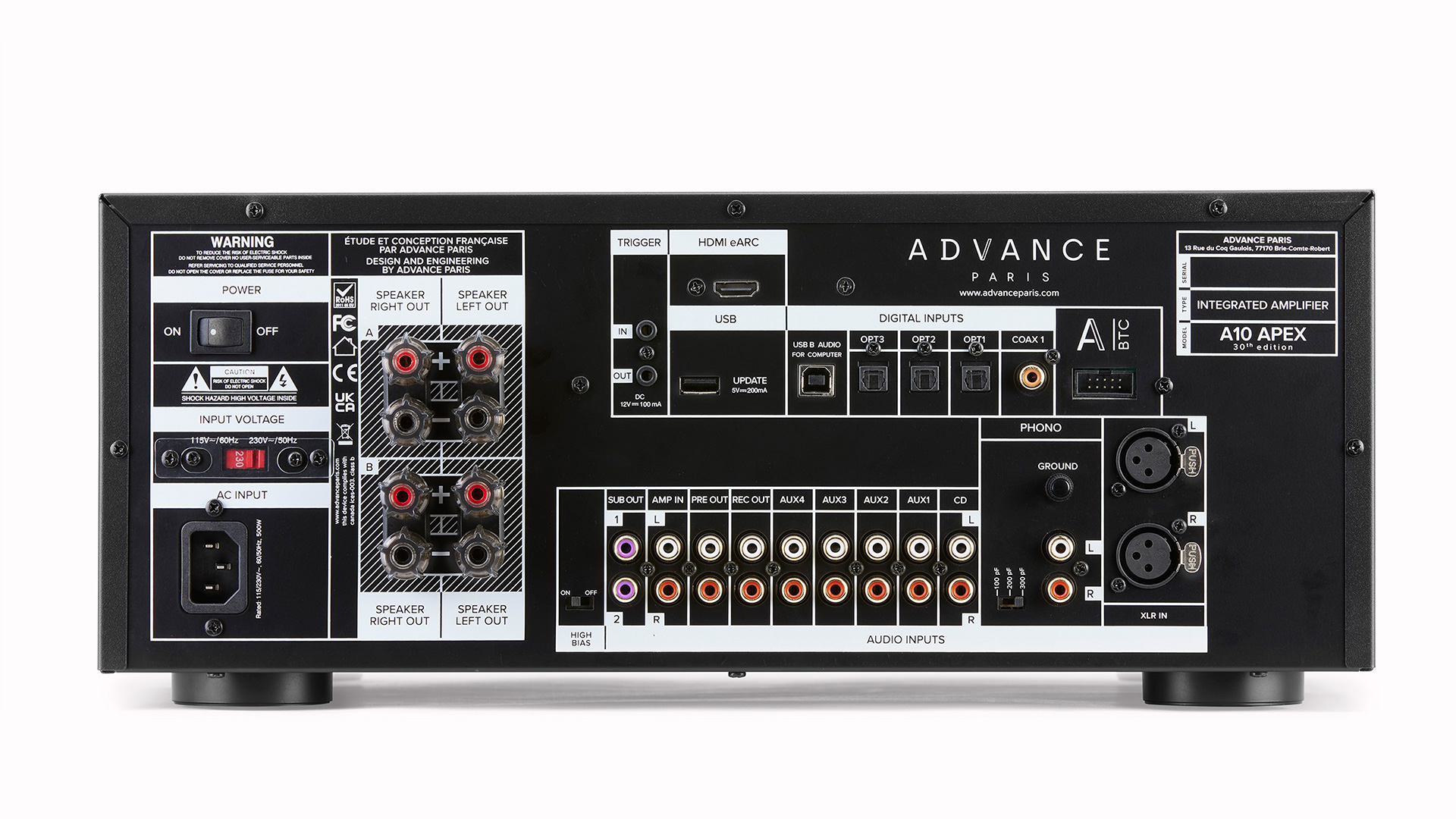 Seria APEX jest wynikiem wysiłków zespołu inżynierów Advance Paris, którzy postanowili przesunąć granice naszej serii Classic pod względem wydajności i funkcjonalności. Model A10 APEX charakteryzuje się hybrydową konstrukcją naszych flagowych wzmacniaczy zintegrowanych, wysoką mocą wyjściową (130 W w klasie A/B przy 8 Ω) i tą samą muzykalnością, która jest doceniana na całym świecie. Aby uczcić 30-lecie marki, przedstawiamy specjalną limitowaną edycję 30TH EDITION w czarnym wykończeniu. Model A10 APEX łączy w sobie ponadczasowy design z nowoczesną technologią, zapewniając moc, muzykalność i łatwość obsługi.