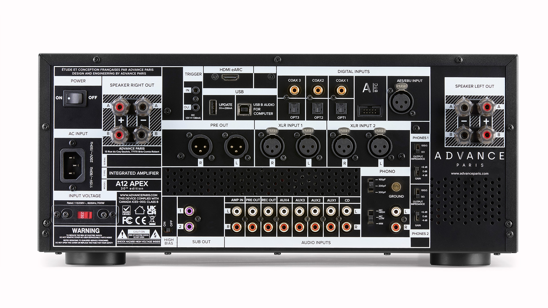Seria APEX jest wynikiem wysiłków zespołu inżynierów Advance Paris, którzy postanowili przesunąć granice naszej serii Classic pod względem wydajności i funkcjonalności. Model A12 APEX charakteryzuje się hybrydową konstrukcją naszych flagowych wzmacniaczy zintegrowanych, wysoką mocą wyjściową (190 W w klasie A/B przy 8 Ω) i tą samą muzykalnością, która jest doceniana na całym świecie. Posiada dwa transformatory mocy, które pozwalają zasilać nawet najbardziej wymagające głośniki dostępne na rynku. Aby uczcić 30-lecie marki, przedstawiamy specjalną limitowaną edycję 30TH EDITION w czarnym wykończeniu. A12 APEX łączy w sobie ponadczasowy design z nowoczesną technologią, zapewniając moc, muzykalność i łatwość obsługi.